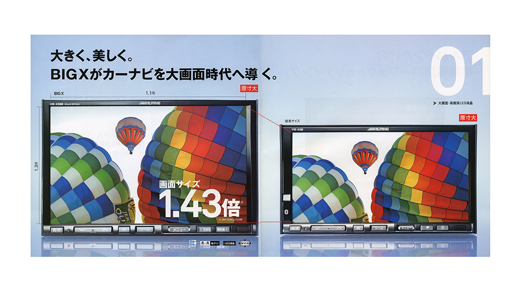 そして2010年、初のビッグX(VIE-X088)が発売された。登場するやいなや、ヴェルファイアとアルファードのオーナーから人気を呼んだ。やはり、このクラスの大空間ミニバンには、大画面のナビがふさわしいとオーナーの方も共感してくれたのだ。自動車雑誌も、カーナビの新しい流れとして次々と記事に取り上げ、ビッグXの認知は一気に広がった。結果、予想を遙かに超える売上げを記録し、ビッグXはアルパインのカーナビの柱になった。