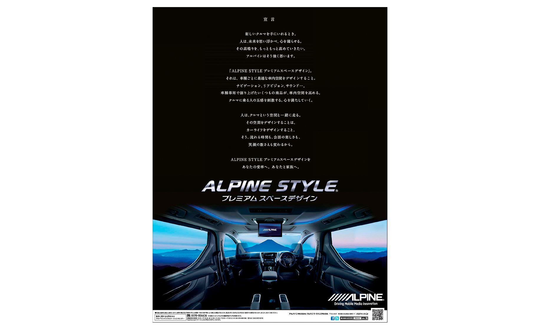 2015年5月、「アルパインスタイル プレミアムスペースデザイン」の登場に合わせて、アルパインは新聞広告15段を使ってこんな「宣言」をした。