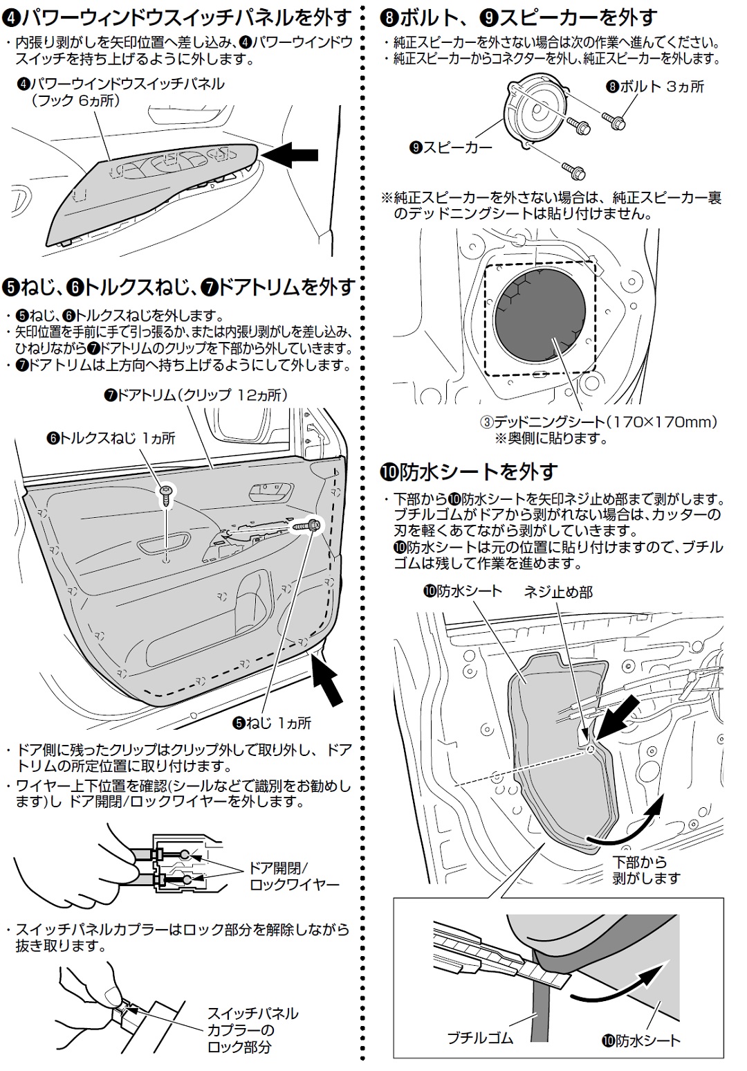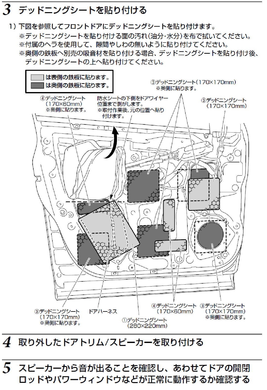 セレナ フロントドア専用に採寸された音質向上用デッドニングキット