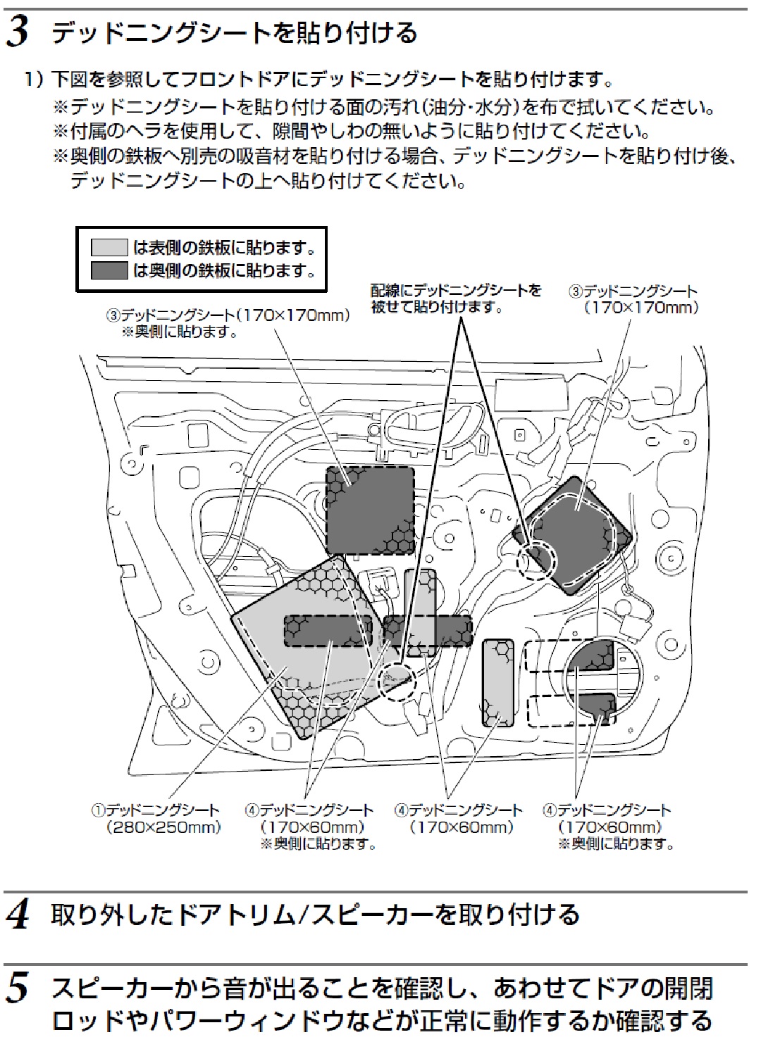 エクストレイル フロントドア専用に採寸された音質向上用デッドニングキット