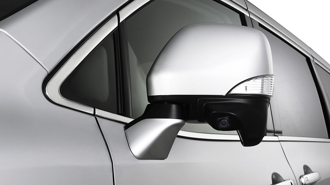 エルグランドのドアアミラーに、対応カメラを見た目も美しく装着