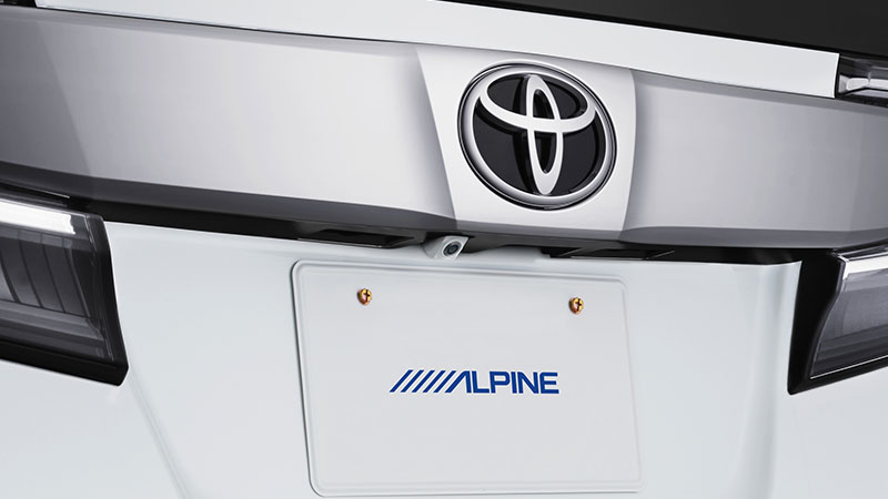 アルパインカーナビと接続時、アルファード/ヴェルファイア専用ガイド線と共に後方の映像をナビ画面へ表示。