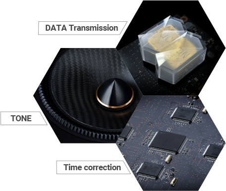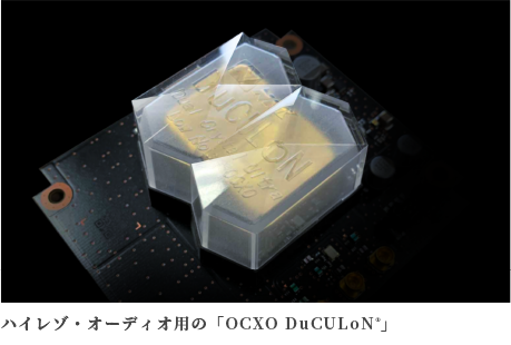 「OCXO DuCULoN®」を採用※1マスター・クロックを発振する水晶発振器に、ハイレゾ・オーディオ用の「OCXO DuCULoN®」を採用しました。現在、考えられる最高峰の高精度クロック発振デバイスです。水晶は温度変化に弱く、精度への影響を免れることは出来ません。