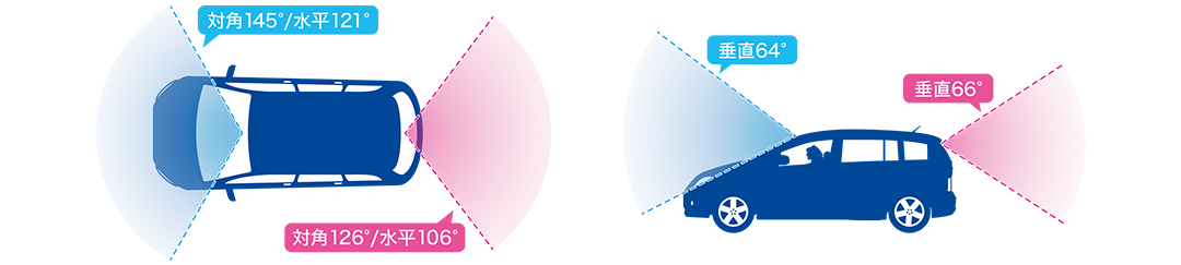 フロントカメラは対角145度、リアカメラは126度を確保。死角になりやすい側道の様子もワイドに録画。後から状況をしっかり確認できます。