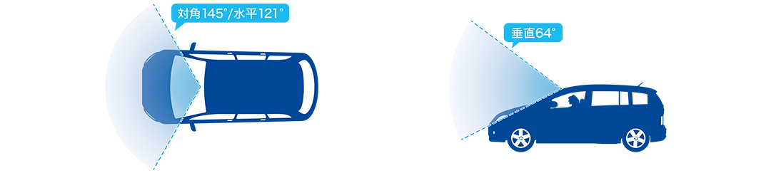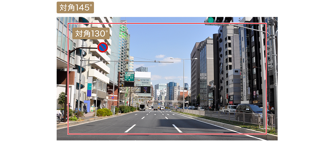 フロントカメラは対角145度を確保。死角になりやすい側道の様子もワイドに録画。後から状況をしっかり確認できます。