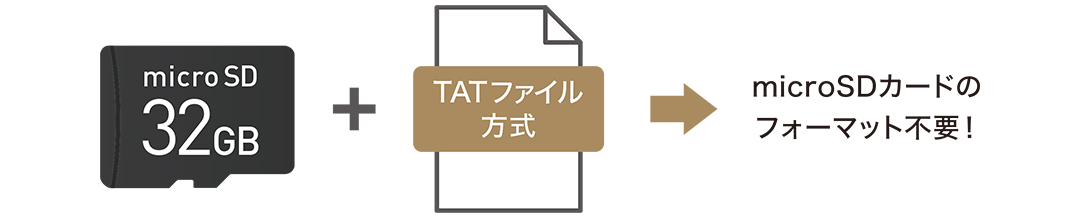 録画エラーを招くmicroSDカードの不具合が起こりにくいTATファイル形式(フレーム単位で映像を記録するため、)を採用しており、定期的なフォーマットが不要です。