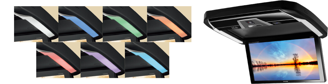 低天井のクルマにも装着可能な、9型リアビジョン。従来比(WVGA比)2.4倍となるWXGA高画質LED液晶にARコーティングを施し、より美しい映像表現を実現。また車内の空気環境を改善するプラズマクラスター技術を搭載しています。