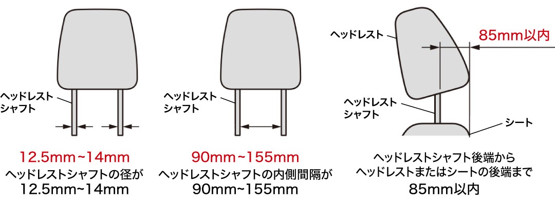以下のサイズのヘッドレストシャフトに装着が可能です。取り付け前にあらかじめご確認ください。