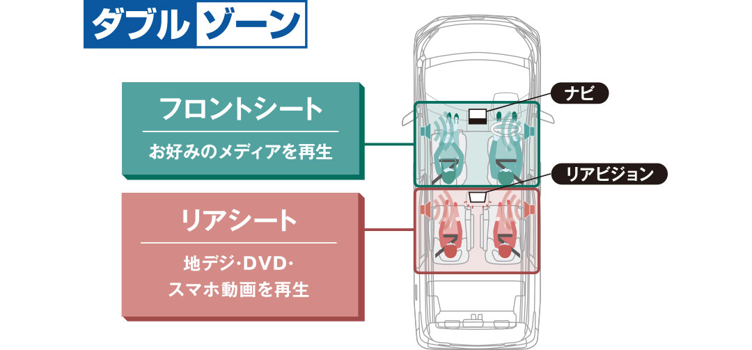 家族がつながりながら、思い思いに楽しめる。「ダブルゾーン」ならそんなドライブが実現できます。