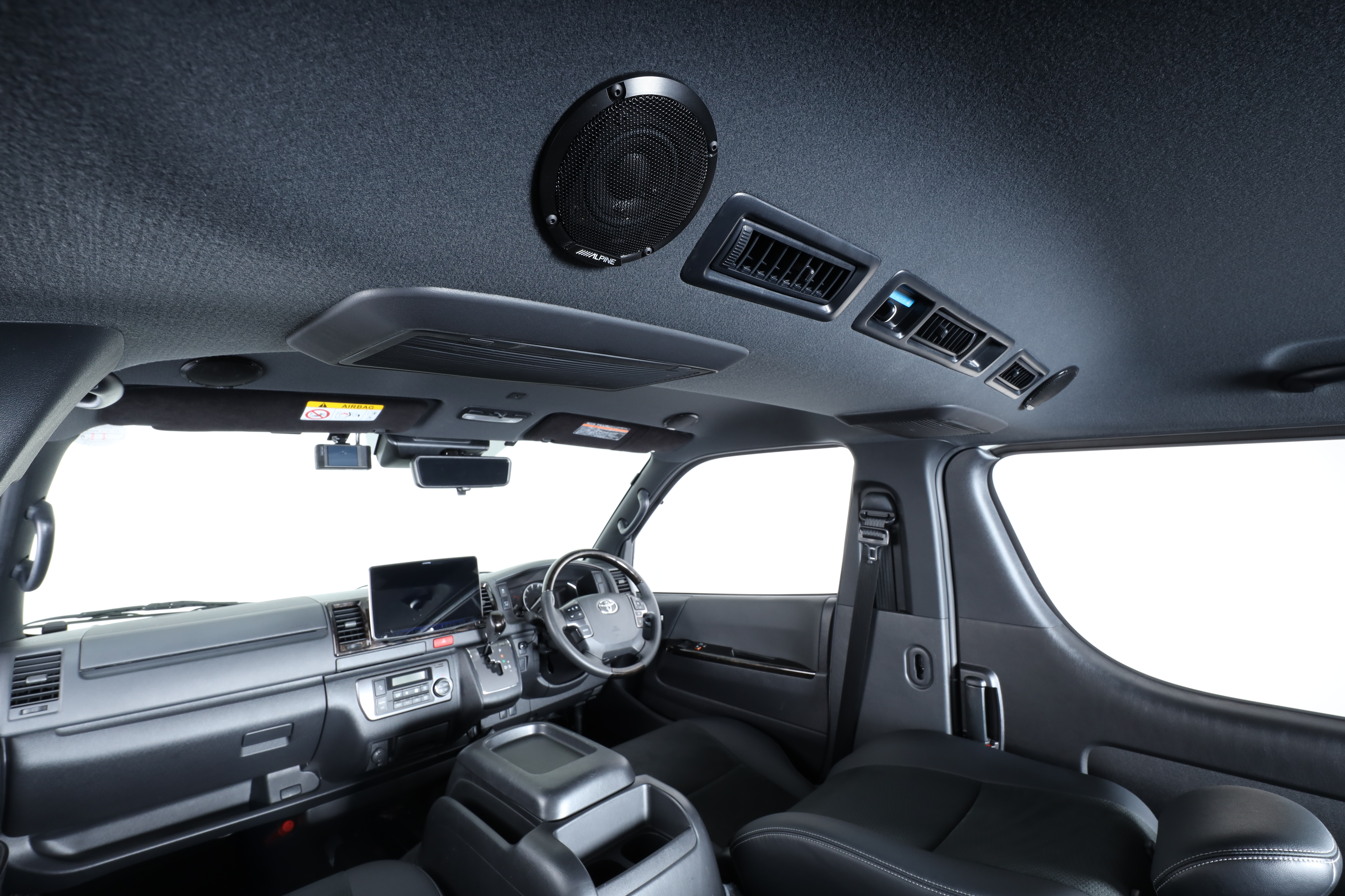 ※汎用スピーカーとしても使用可能、ルーフライニングに取付けできる、ベースとブラケット、グリルが同梱されています。